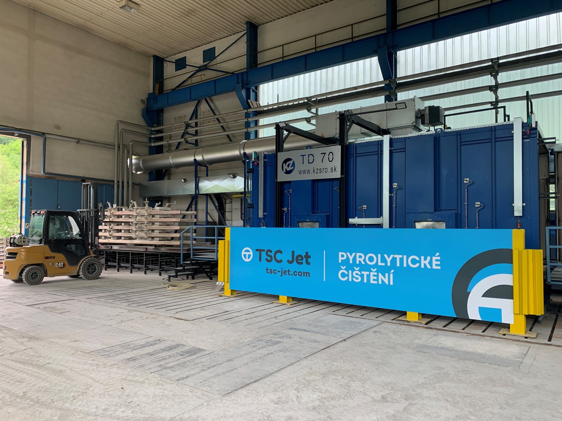 V Blansku u Brna jsme instalovali novou pyrolytickou pec určenou pro velkokapacitní odlakování. Tato pyrolytická pec je součástí nově vybudovaného moderního odlakovacího centra. Centrum bude dále vybaveno komorovým tryskačem pro díly s menšími rozměry, průběžným tryskačem pro velké díly, lakovacím boxem pro aplikaci základního nástřiku dílů, čtyřmi odlakovacími vanami pro odlakování Fe materiálů a mycím boxem s vysokotlakou myčkou.